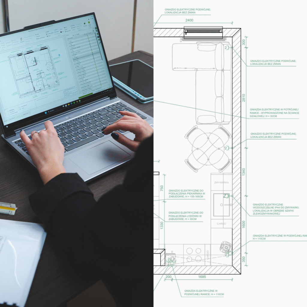 Podczas inwentaryzacji wykonuję dokładne pomiary pomieszczeń, analizuję istniejące warunki techniczne oraz omawiam z klientem możliwe warianty zagospodarowania przestrzeni. Dzięki temu już na wczesnym etapie możemy świadomie podjąć decyzje dotyczące funkcjonalności i układu wnętrza.