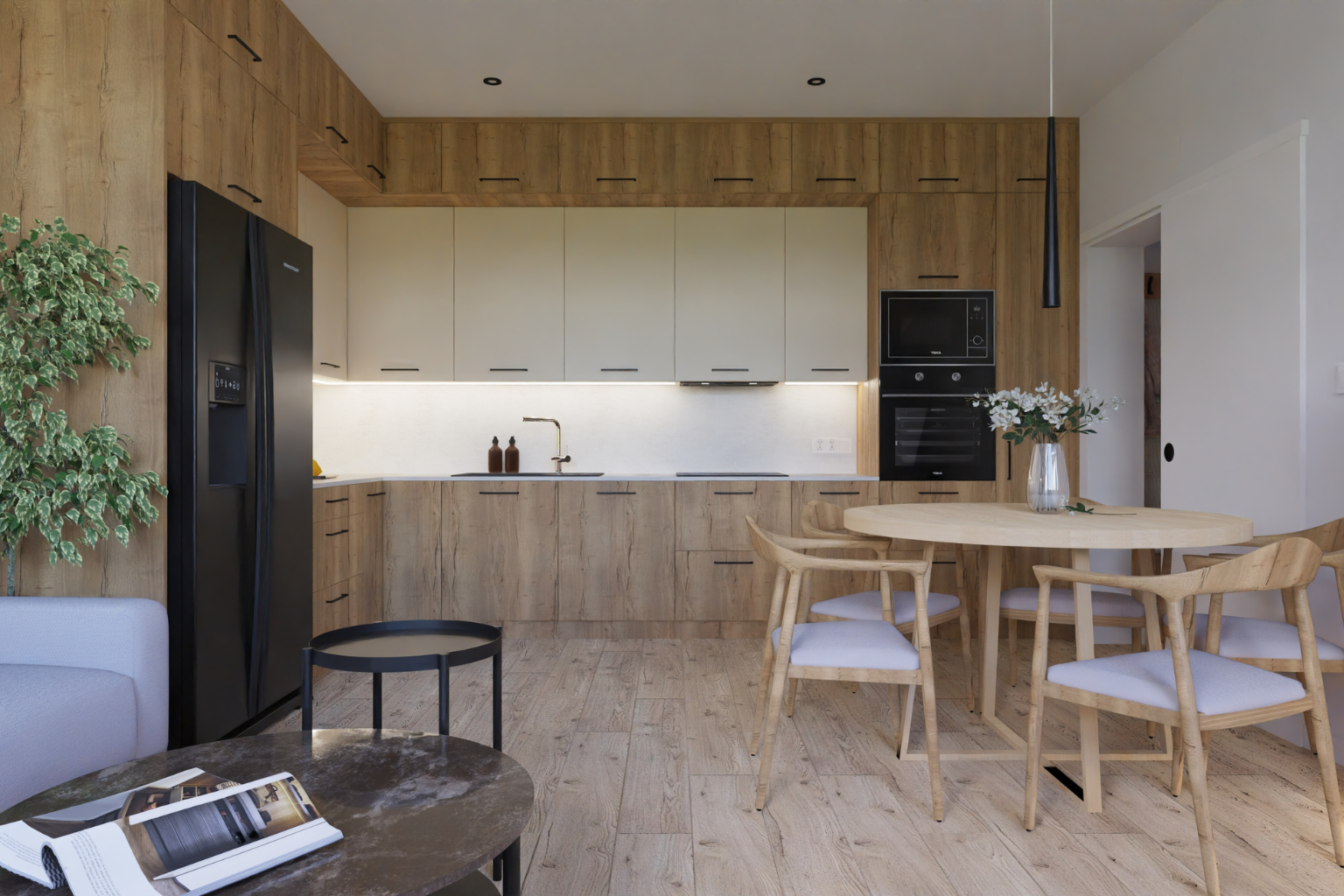 Na podstawie zebranych informacji opracowuję wstępny model 3D wnętrza. Zawiera on wszystkie niezbędne elementy – takie jak układ ścian, zabudowy, meble czy podstawowe materiały – które pozwalają w czytelny sposób zobrazować przestrzeń i jej proporcje. To moment, w którym projekt przestaje być jedynie rzutem 2D, a zaczyna nabierać realnych kształtów.